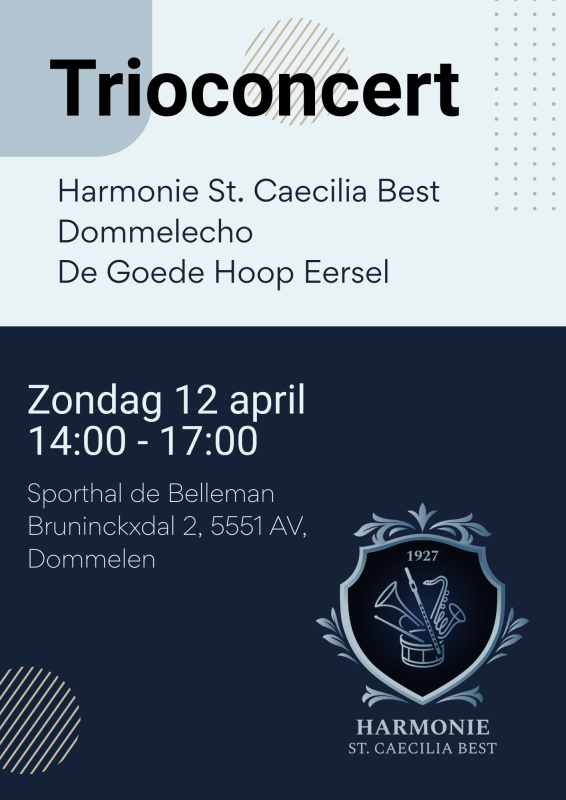 Op zondag 12 april zal het Groot Orkest in Dommelen met collega verenigingen De Dommelecho en De Goede Hoop uit Eersel de muzikale krachten bundelen en gezamenlijk een veelzijdig muziekprogramma verzorgen. Elk orkest zal een deel van het programma verzorgen. Het concert start om 14:00 en zal tot ongeveer 17:00 duren in de sporthal van de Belleman in Dommelen (Bruninckxdal 2, 5551 AV, Dommelen). Entree €5 en tickets zijn aan de deur te koop.