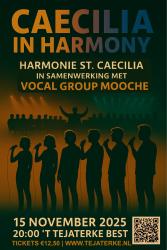 Op zaterdag 15 november zult u worden verrast door het muzikaal spel van harmonie St. Caecilia gecombineerd met de prachtige zangkunsten van Vocal Group Mooche.