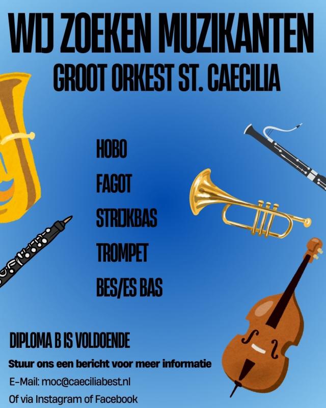 We zijn altijd op zoek naar enthousiaste muzikanten voor al onze orkesten, en op dit moment hebben we specifieke vacatures in het Groot Orkest. Goed om te weten is dat bij het Groot Orkest B diploma niveau nodig is. Dit orkest repeteert elke woensdagavond van 20:00 tot 22:00 uur. Of je nu net komt kijken of al jarenlang speelt – bij ons vind je muzikaliteit, gezelligheid en uitdaging. Kom gerust eens sfeer proeven!